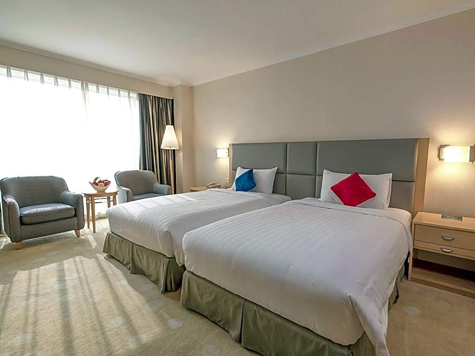 Overlooking the city, spacious air-conditioned room has a flat-screen TV, mini-bar and personal safe.